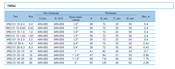 Трехходовые клапаны типа VRG 131 имеют резьбовое