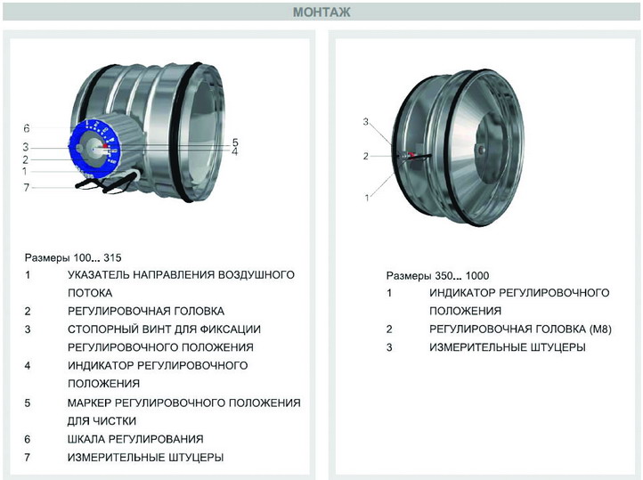 • Расход воздуха регулируется поворотом регулировочной головки, при котором изменяется размер отверстия регулировочного конуса, образованного лепестковыми створками.