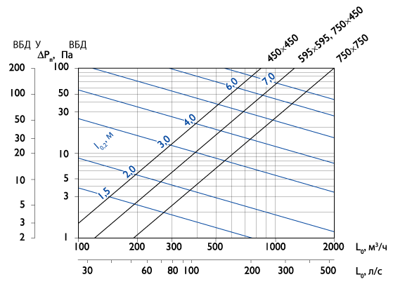 При использовании фильтров других производителей с иными аэродинамическими характеристиками потери давления в блоке без фильтра суммируются с паспортными данными по &Delta Рп для применяемого фильтра.